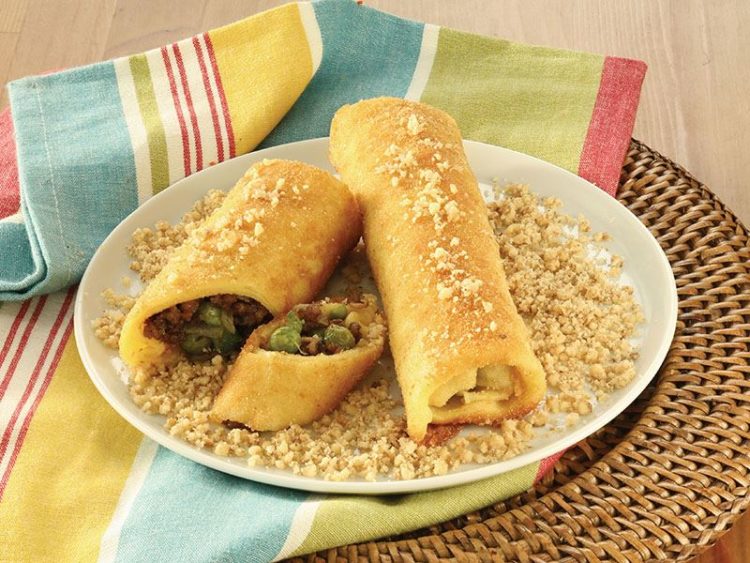 7. Hazırladığınız kreplerin içine 4 yemek kaşığı karışımdan koyup, kenarlarından kapatıp rulo şeklinde sarın..