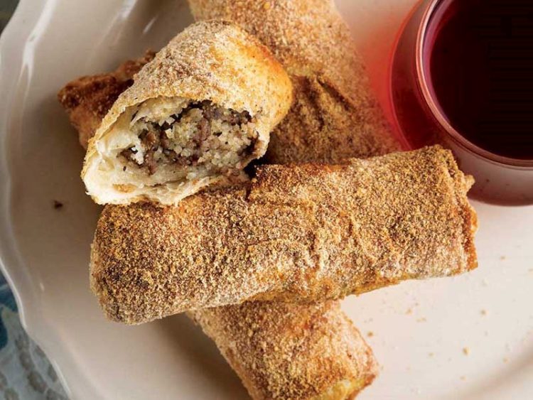 - Kenarda kalan yufka parçalarını içe doğru katlayıp sigara böreği hazırlar gibi yufkaları ruloşeklinde sarın..
