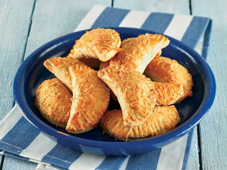 - Üzerine rendelenmiş kaşar peynirini ekleyip ikiye katlayarak fırın tepsisine dizin..