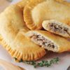 - Harçtan 1 yemek kaşığı ilave edip yarım ay şeklinde kapatın..