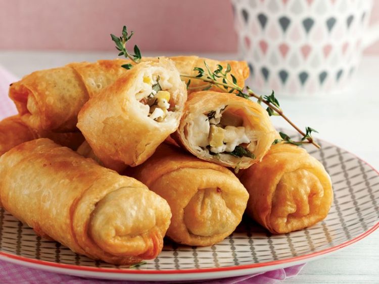 - Üzerlerine hazırladığınız iç harcından paylaştırın ve rulo şeklinde sarın..