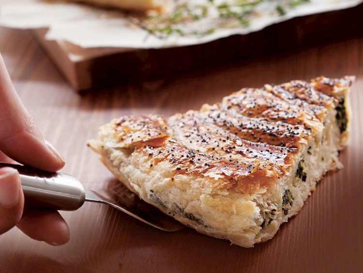 - Dikdörtgen milföy hamurlarını uzunlamasına ortadan ikiye kesip iç harcı paylaştırın..