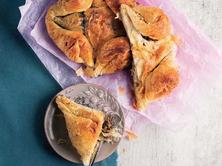 - Böreklerin üzerine tereyağı sürüp, önceden ısıtılmış 180 derece fırında kızarana kadar pişirin..
