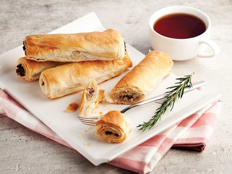 kısımlarına paylaştırıp rulo şeklinde sarın.. - Uç kısımlarını yumurta akıyla yapıştırın..