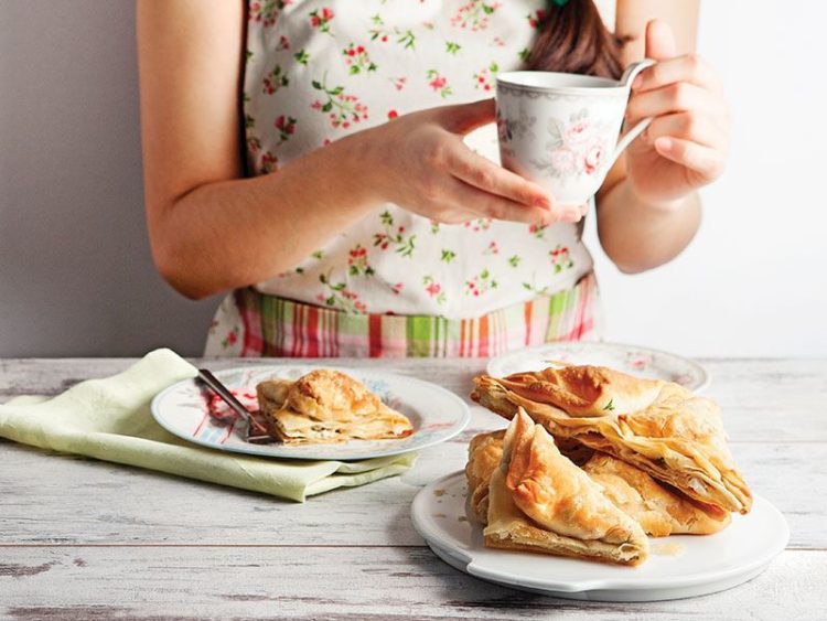 - Yufkaların üzerine ayçiçek yağı sürün..