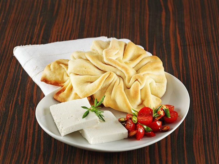 - Üzerine lor peyniri serpip karşılıklı kenarlarından tutarak ortada büzüp toplayın..
