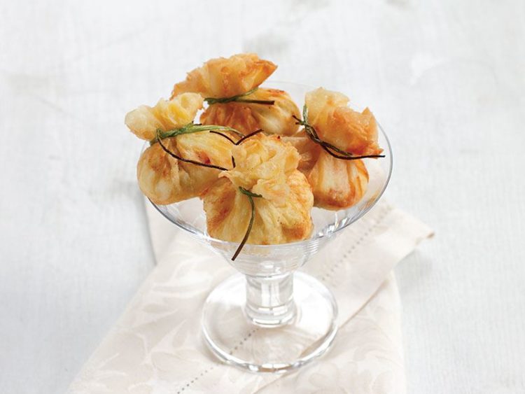 - Yufkanın kenarlarını üstte toplayıp kese şekline getirin..