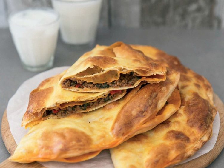 - Hamurların yarısına kıymalı harçtan yayın, yarım ay şeklinde kapatın..