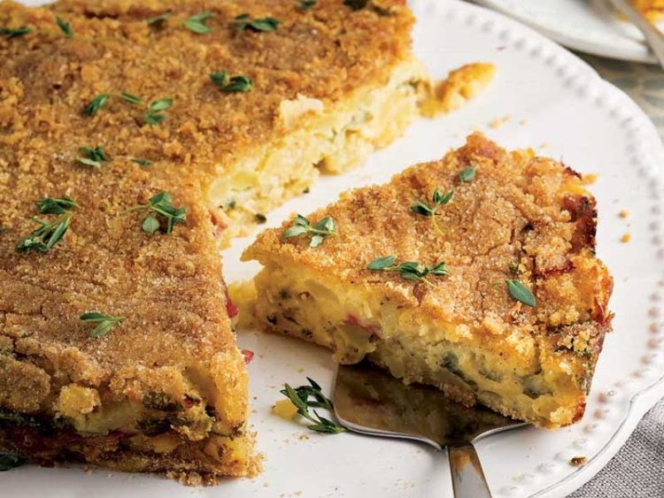 7. Üzerine hazırladığınız harcı ve en üste kalan patates püresini yayın..