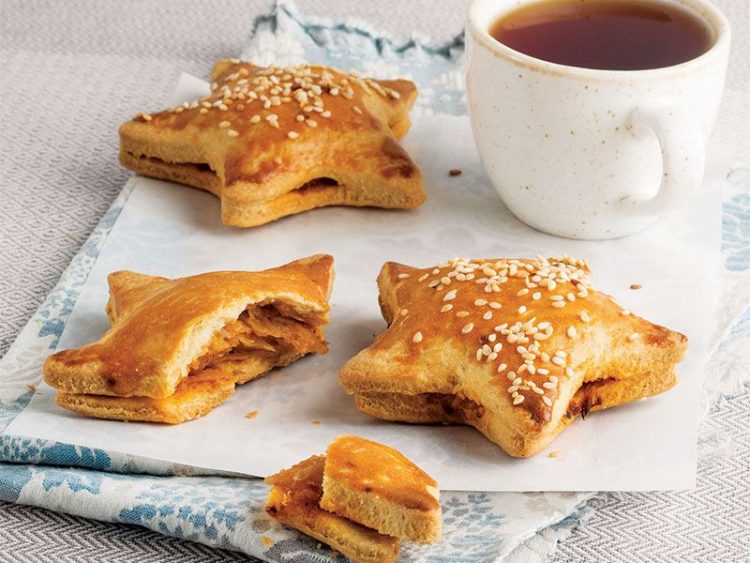 - Yıldız börekleri yağlı kağıt serili bir fırın tepsisine dizin..