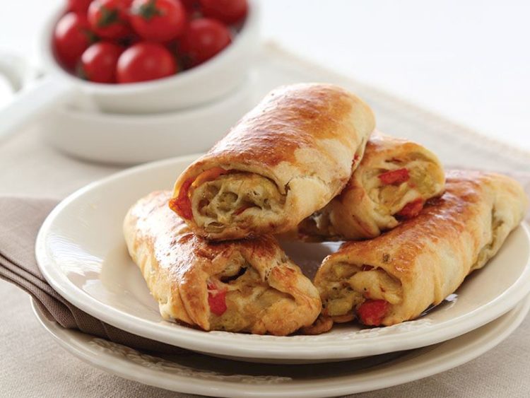8. İç harcından üzerine yayıp rulo şeklinde sarın ve 4-5 parmak kalınlığında kesin..