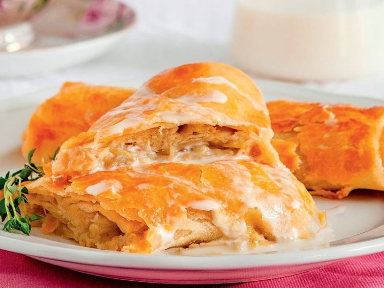 11. Geniş kısımlarına iç harcından yayıp kalın sigara böreği şeklinde sarıp yağlı kağıt serili fırın tepsisine dizin..