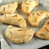 13. Her bir hamuru çay tabağı büyüklüğünde açıp içlerine patlıcanlı harçtan paylaştırıp üçgen olacak şekilide kapatın..