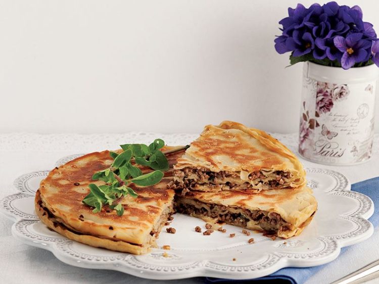 - Kıymalı harcı yayıp kalan yufkaları yine aralarına yağ sürerek üst üste tepsiye dizin..