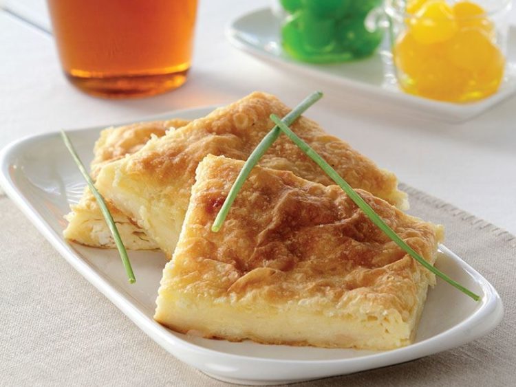 - İki yufkayı yine aralarına sütlü harçtan yayarak tepsiye yerleştirin..