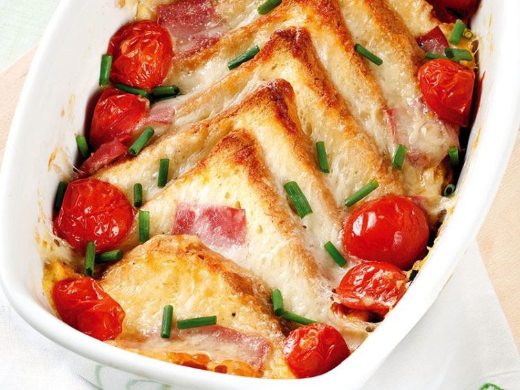 - Ekmekleri üçgen şeklinde kesin ve ekmeklerin iki yüzüne tereyağı sürün ve fırın kabına dizin..