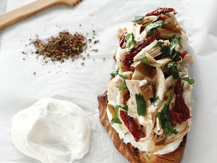 8. Ekmeklerin üzerine sos sürüp tavuk karışımını paylaştırın ve servis yapın..