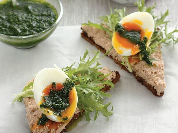- Haşlanmış yumurtaları ortadan ikiye kesip sandviçlerin üzerine ekleyin..