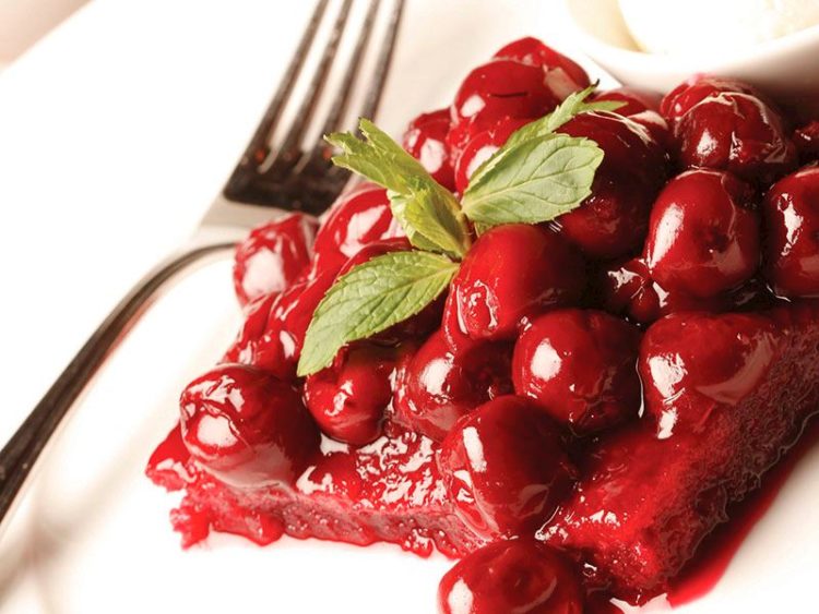 5. Vişne tanelerini tabağa alın ve vişne şurubunu soğutmadan kızarmış ekmek dilimlerinin üzerine gezdirin..