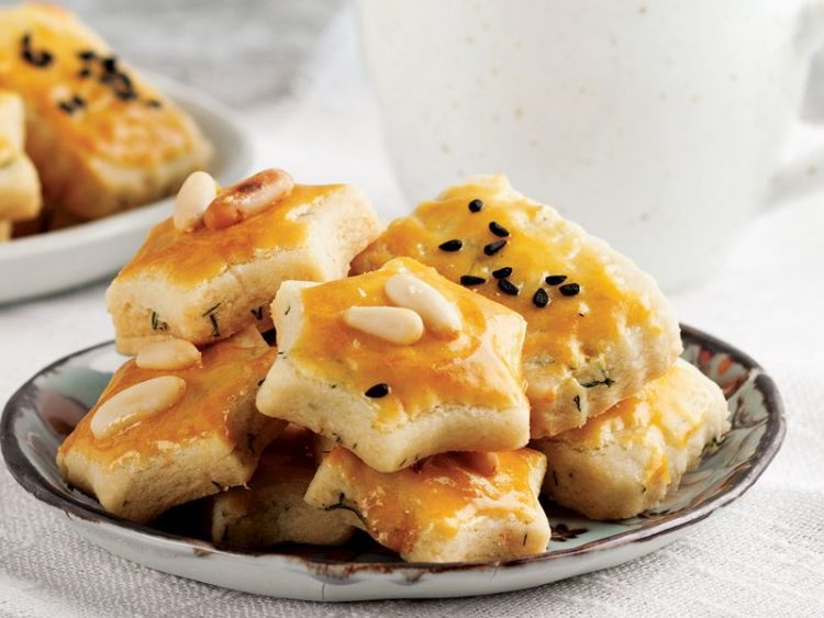 - Üzerlerine yumurta sarısı sürüp dolmalık fıstık ve çörek otu serpin..