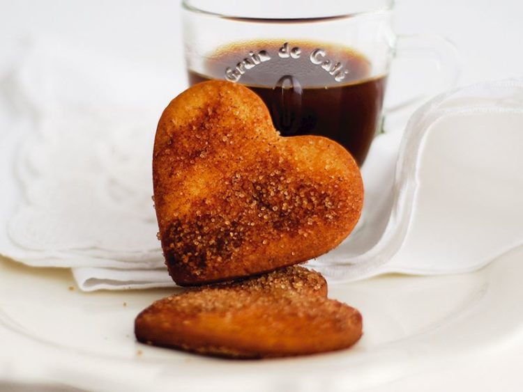 - Diğer yarısını iki fırın kağıdı arasında merdaneyle, 3 mm kalınlığında açın ve kalp şeklinde kurabiye kalıbıyla kesin..