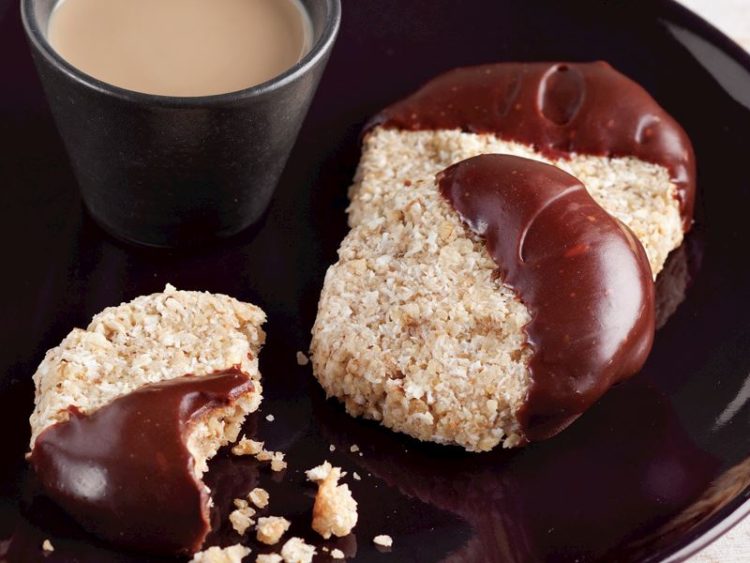 - Damla çikolatayı benmari usulü eritip ılınan kurabiyelerinizin bir kenarını erittiğiniz çikolataya batırın..