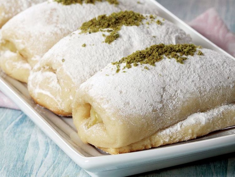 - Üzerine pudra şeker ve antepfıstığı serpip servis yapın..