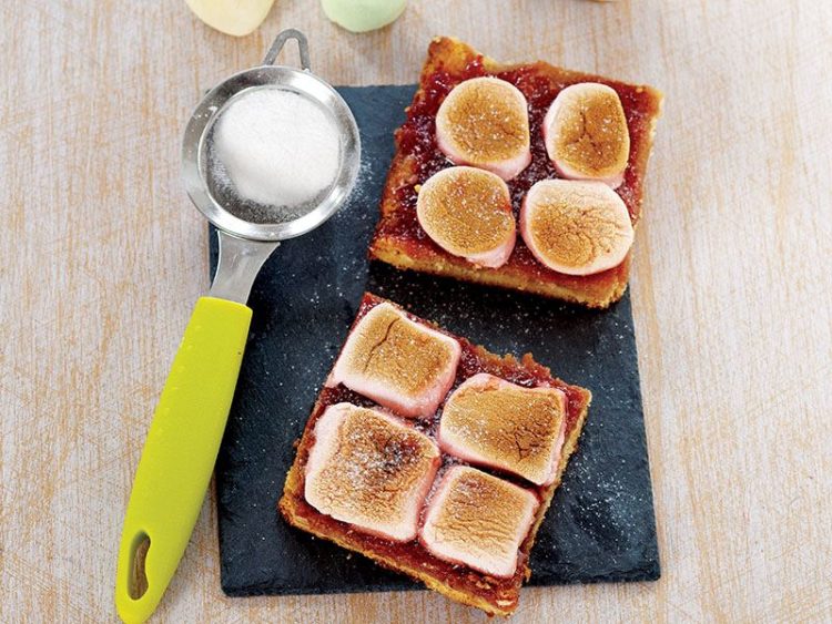 - Kesik tarafı aşağıya gelecek şekilde reçelin üzerine yan yana yerleştirin..