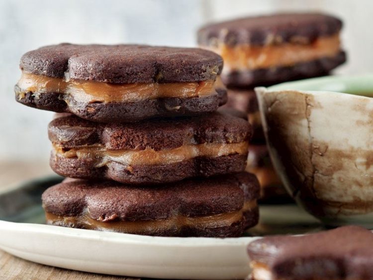 - Ilınan kurabiyelerin yarısının üzerine süt reçeli sürüp diğer kurabiye parçaları ile üzerlerini kapatın..