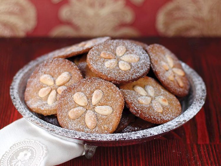 - Her birinin üzerine bastırarak badem yerleştirin ve fırında 12-14 dakika pişirin..
