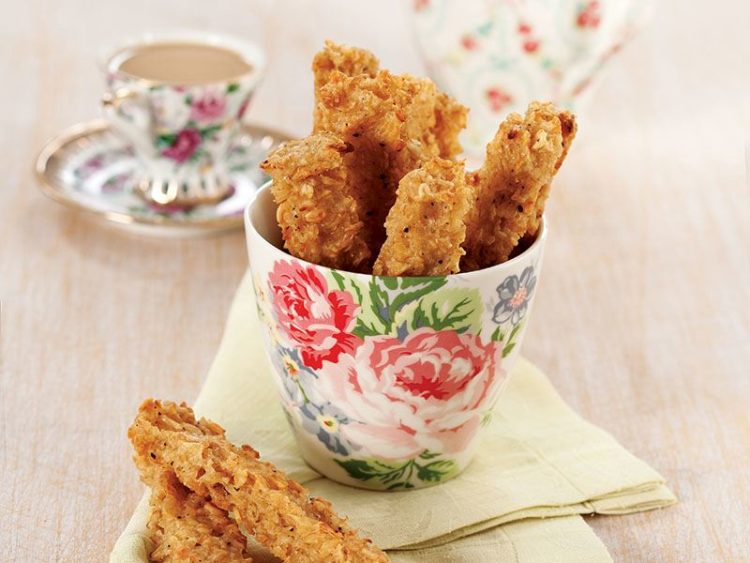 - Yulaf şeritlerini koyu altın sarısı olana kadar önceden 200 derecede ısıtılmış fırında 40-50 dakika pişirin..