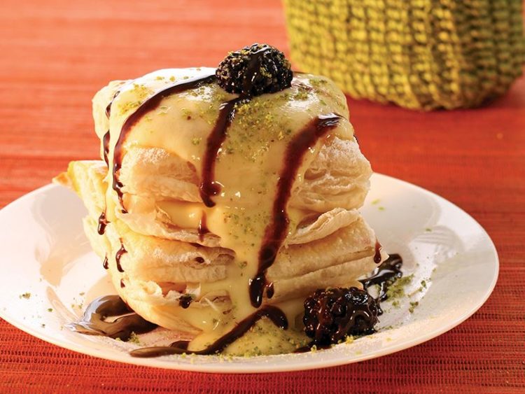 Önceden kızartmış olduğunuz milföy hamurlarını servis tabağına dizin..