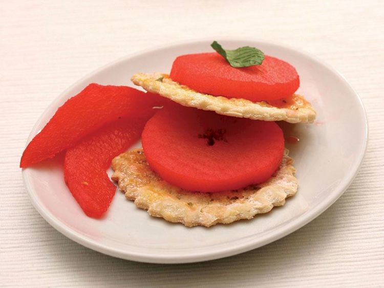 - Armutları soyup 2 tanesini enine halka şeklinde dilimleyin..
