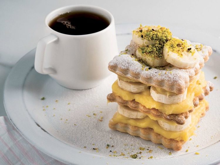 - Milföylerin arasına krema sürüp ince dilimlenmiş muzları yerleştirerek 3 kat olacak şekilde üst üste dizin..
