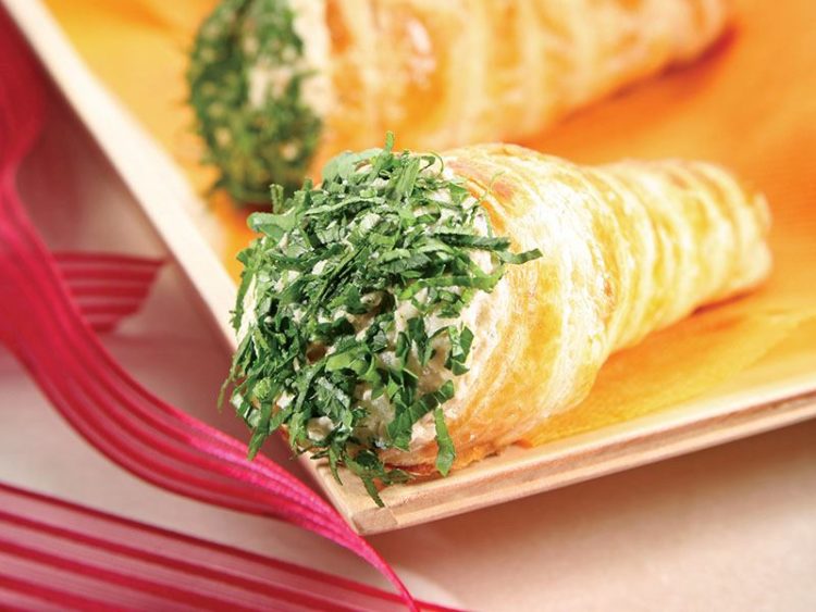 - Hamurları yağlanmış külah şeklindeki ısıya dayanıklı kalıpların etrafına sarın..