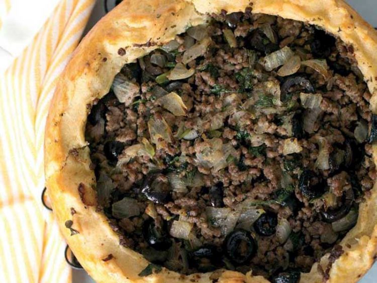- Hamurun orta boşluğuna soğuyan kıymalı harcı aktarın..
