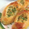 13. Her parçayı kayık şeklinde açıp patlıcanlı harcı hamurun üzerine, kenarlarından boşluk kalacak şekilde yayın..