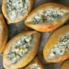 - Her parçayı oval şekilde açıp peynirli harcı paylaştırın..