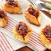 6. Üzerine hazır pesto sos sürün, lor peyniri, çatalla ezdiğiniz süzme peynir ve çörek otu karışımından serpin..
