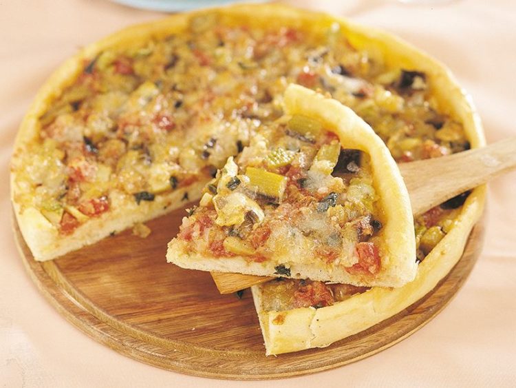 - Sebzeli karışımı pizza hamurunun üzerine yayın..