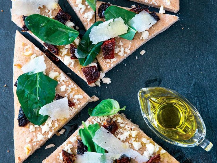 9. Yıkayıp süzdüğünüz yeşillikleri pizzanın üzerine yayıp 5-10 dakika daha pişirin..