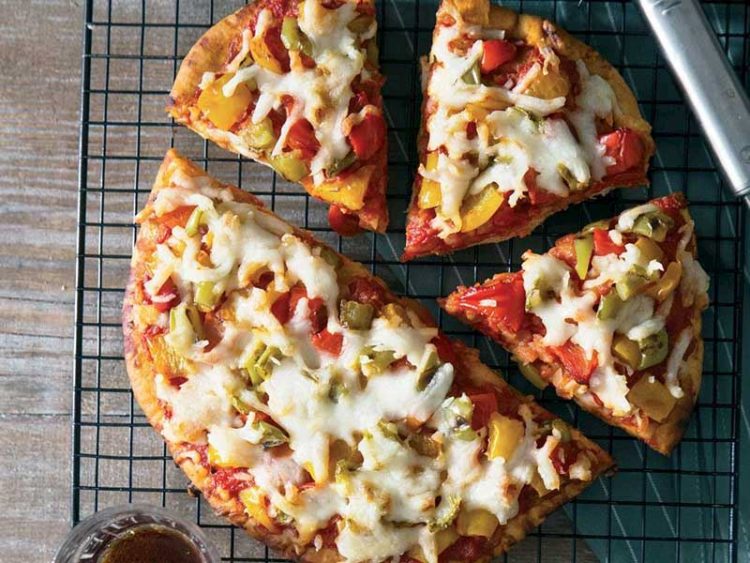 Renkli biberli kıtır pizza