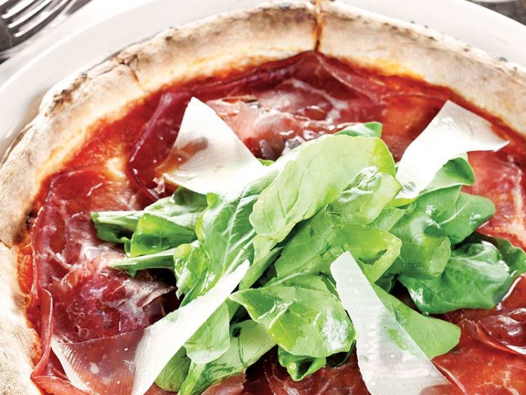10. Fırından çıkarıp üzerine bresaola, parmesan dilimlerini ve roka yapraklarını yerleştirip servis yapın..