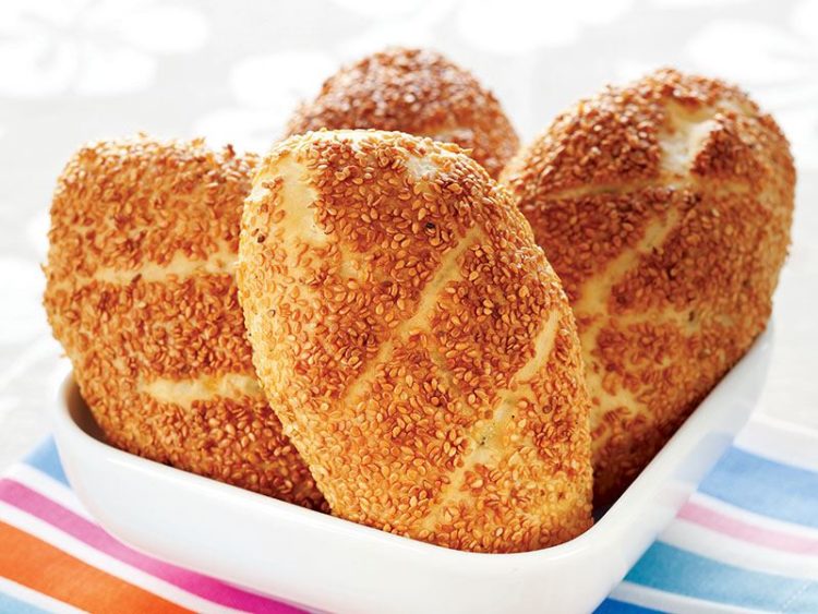 - Hazırladığınız poğaçaları önce pekmezli suya ardından bolca susama bulayın ve tepsiye dizin..