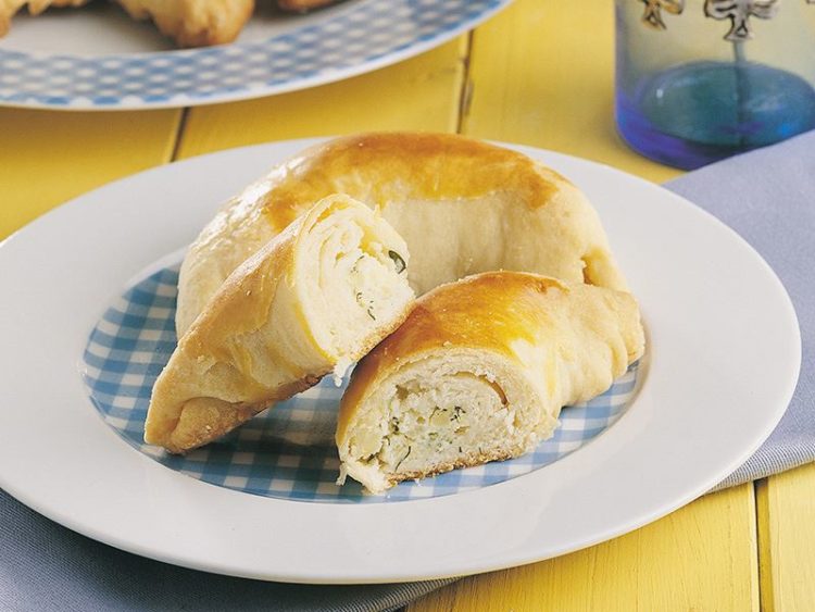- Hamurların ortasına bu karışımdan koyup rulo yaparak sarın ve ay şekli verin..
