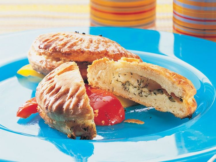- Hamurların ortasına peynirli malzemeyi paylaştırıp yarım ay şeklinde kapatın..