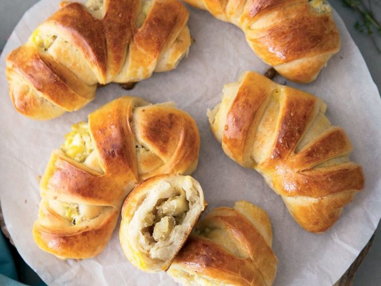 - Hamurların kenar kısımlarına hazırladığınız iç harcından birer yemek kaşığı kadar koyarak sarın ve yağlı kağıt serili fırın tepsisine dizin..