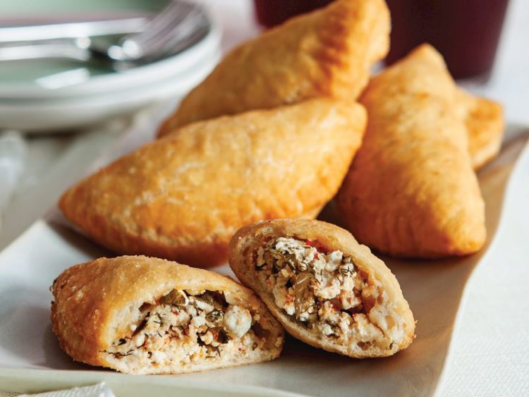 - Peynirli harçtan koyup hamuru yarım ay şeklinde kapatın..