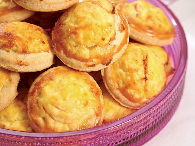 - Sıkma torbasının içindeki peynirli karışımı yuvarlak hamurların ortasına sıkın..