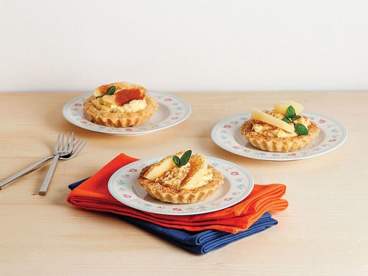 - Soğuyan ayva dilimlerini tartların üzerine paylaştırın..